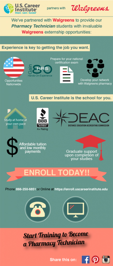 Now is the perfect time to enroll with U.S. Career Institute! We’ve partnered with Walgreens® to provide our Pharmacy Technician students with invaluable Walgreens® Pharmacy Technician Externship opportunities.